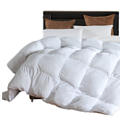 Unlike other products featured in this review, this comforter is constructed with baffle boxes. The filling is distributed among multiple segments, each separated from adjacent ones by baffle walls (not just stitching as in sewn-through comforters). Such a design eliminates cold spots and allows to achieve a more significant loft with the same amount of fill.