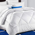 If you have a limited budget but want to get a decent, lightweight comforter that will not make you sweat all night, this product might be just the right one. This microfiber comforter with polyester batting is designed for all climates and seasons. It is rather on a thin side and does not have a lofty look. Instead, it is great for tucking under a mattress and going into a duvet cover.